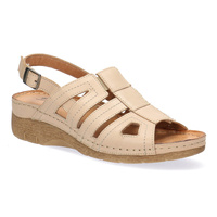 Solidne skórzane sandały damskie na rzepy Pollonus capucino 5-0780-041