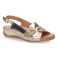 Wygodne sandały damskie skórzane na sprzączkę Pollonu rudy + złoty 5-1525-013