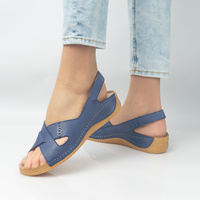 Skórzane klapki damskie na rzepy Pollonus niebieskie 5-0780-039