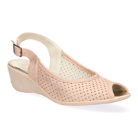 Skórzane klapki damskie na koturnie ażurowe Pollonus szary brokat/zloty5-1264-013