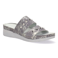 Skórzane klapki damskie motyw węża Pollonus szare snake 5-0984-047