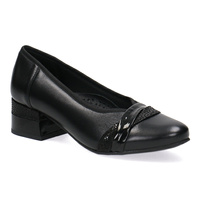 Skórzane czółenko damska na niskim obcasie z kokardką Kostex czarny 2590