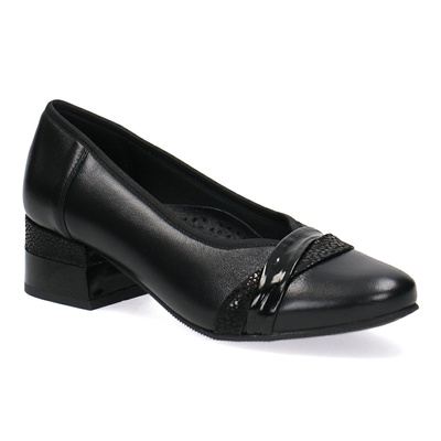 Skórzane czółenka na obcasie Kostex czarny 2667