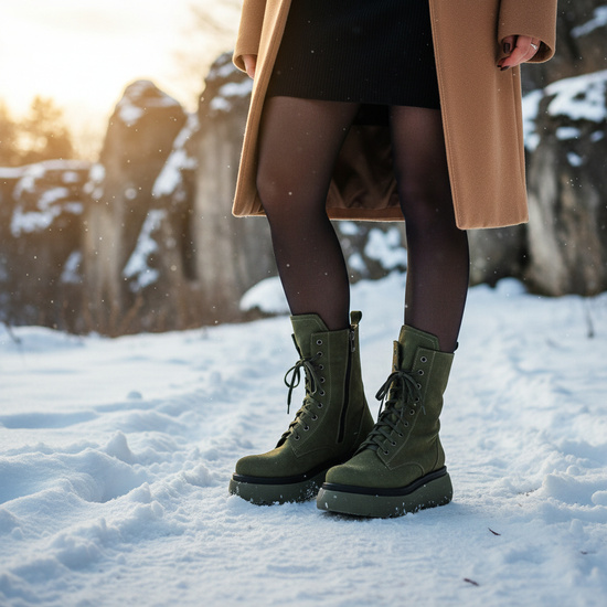 Skórzane kozaki damskie Pollonus zielony 5-1564-002