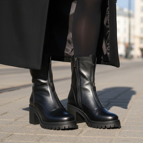 - Skórzane botki damskie na słupku Pollonus 5-1679-001