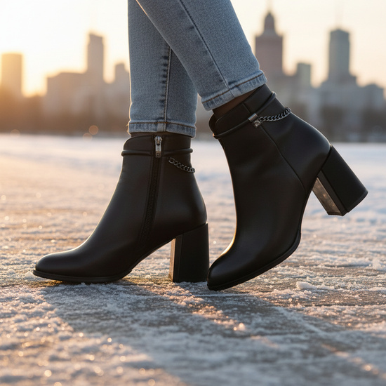 - Skórzane botki damskie na słupku EPICA F6F630035A 01