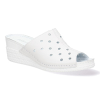 Solidne skórzane klapki damskie zakryte z perforacja Pollonus Biały +5-1416-001
