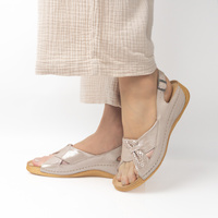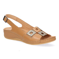 Solidne skórzane sandały damskie na rzepy Pollonus capucino 5-0780-041