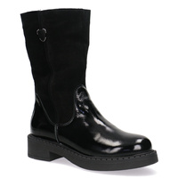Skórzane kozaki damskie Pollonus czarny naplak+welur 5-1430-001